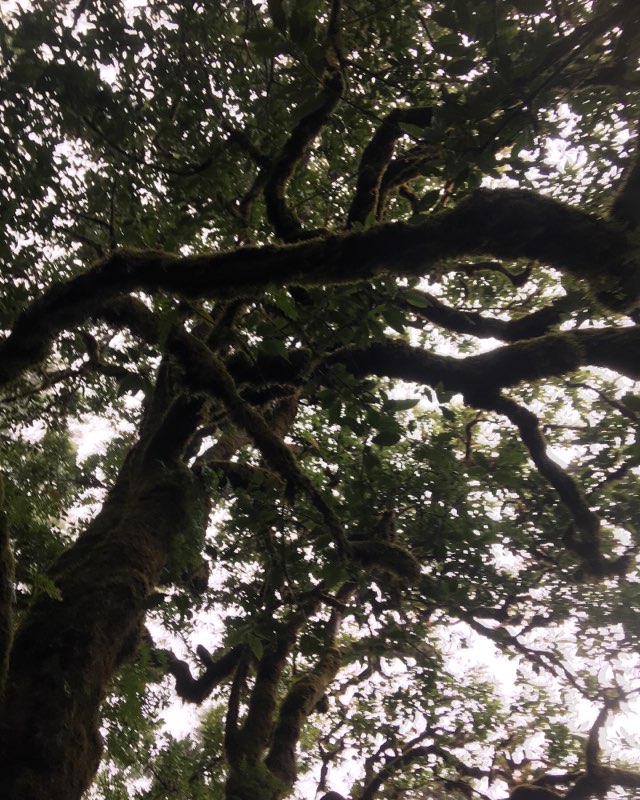 I am soon dropping down a narrow trail towards the famous Fanal forest. In the forest the trail winds through massive ancient Laurel trees some with trunks more than 20ft across. The forms of the trees speak of their great age. Not only their massive moss covered trunks but the complexity of the canopy with its gnarled network of branches and large dark green leaves. The place has a kind of primordial smell of dankness and perhaps as the earth would have smelt at the time of the dinosaurs. These ancient beings have grown, cracked, broken and grown back in ever more incredible shapes over centuries blown incessantly by the high winds found at these altitudes. These are the ghoulies that have blown clean across the wide Atlantic shaping the land and bringing the giant surf that pounds and sculpts the shores. Their ancient gnarliness remind me of the Yew tree groves planted many centuries ago near my home in Lancashire England.